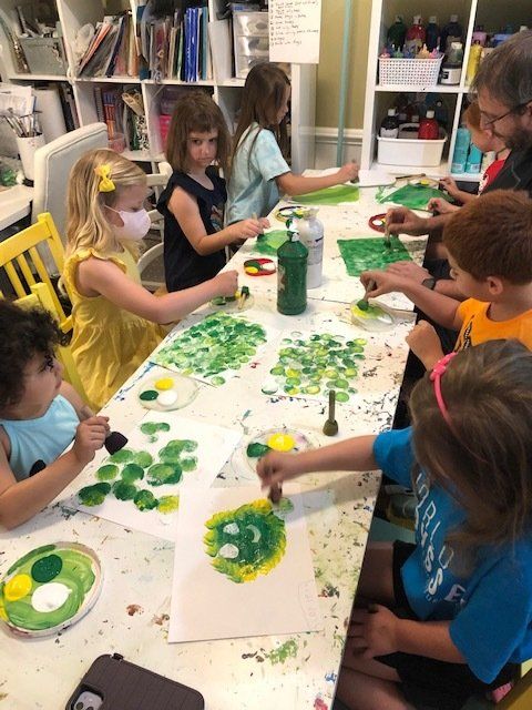 We encourage process art, art that is directed by the individual. We respect everyone's choices and celebrate their experience of discovery. In process art, the final product is always unique and the focus lies in the creation of the work, not the outcome. Will you or your child bring home something completed and hangable? Of course. We do like a finished product that is worthy of your pride. Art is a reflection of our inner selves and journey. Children (and adults) are natural artists if we allow them to create freely. So yes, process art! Yes, product art! How? We set up lessons and materials and teachable moments. Then, we set everyone free to create.