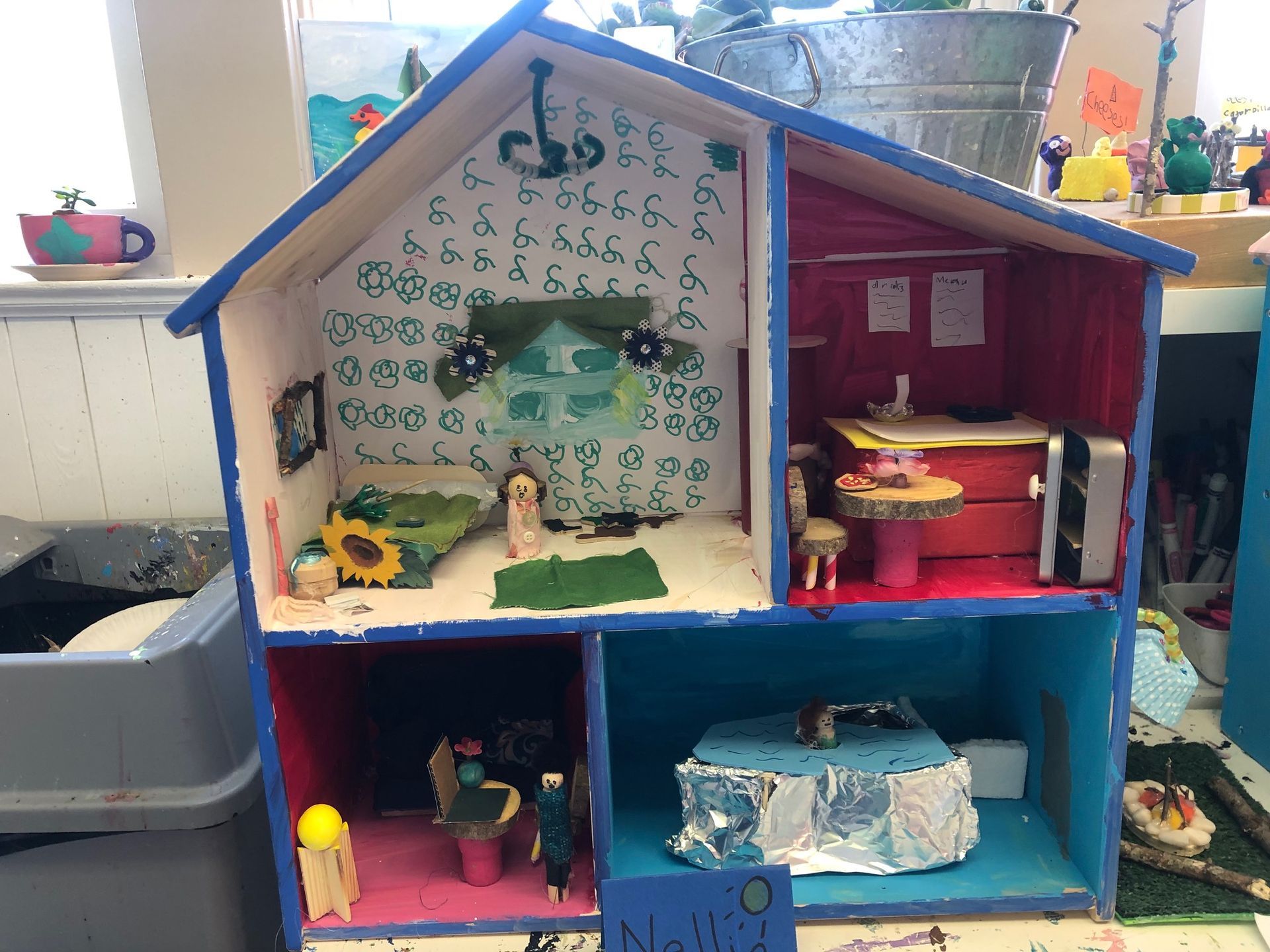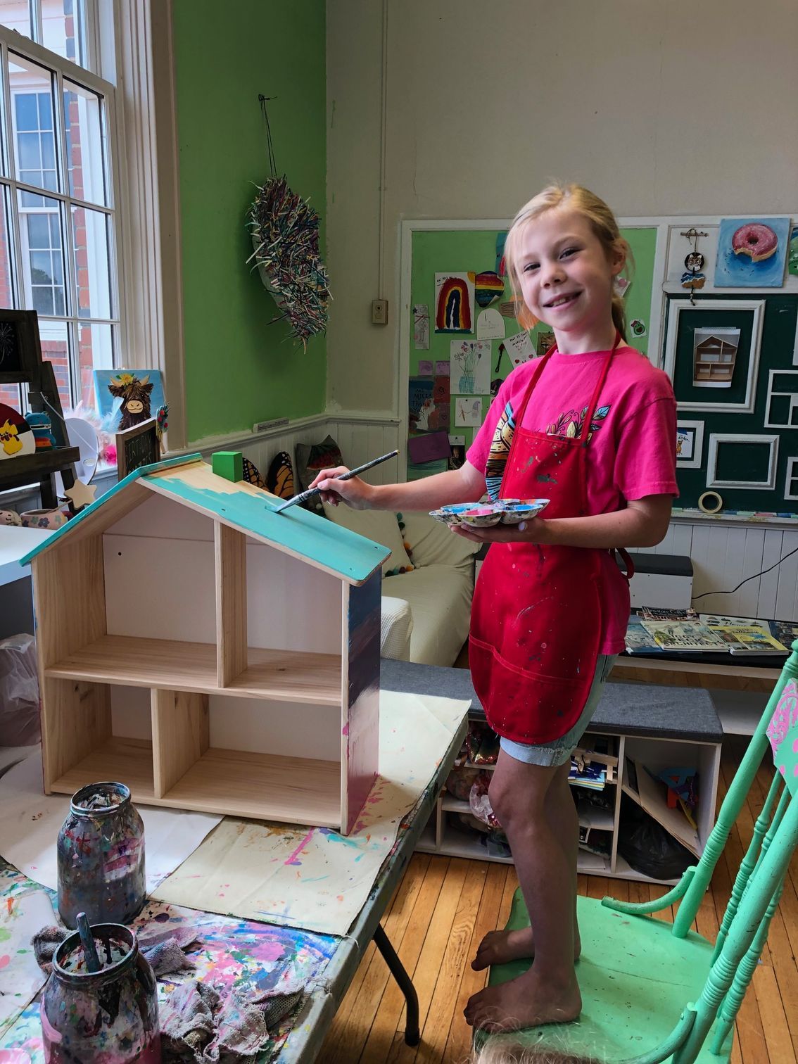 This is quite possibly the busiest and most creative camp we've ever pulled off. Last year, we had quite the Dream Village by Friday. Kids create their dream house or dream place (pet rescue, fire station, doll house...) using a deluxe wooden dollhouse. We preassemble the solid-wood houses which measure almost 2 feet tall by 2 feet wide. We spend the week painting the house inside and out, creating furniture, decorating, and making characters to "live" in the house. From beds to fridges to rugs to toilets to pets, each added piece of this house is kid-crafted.